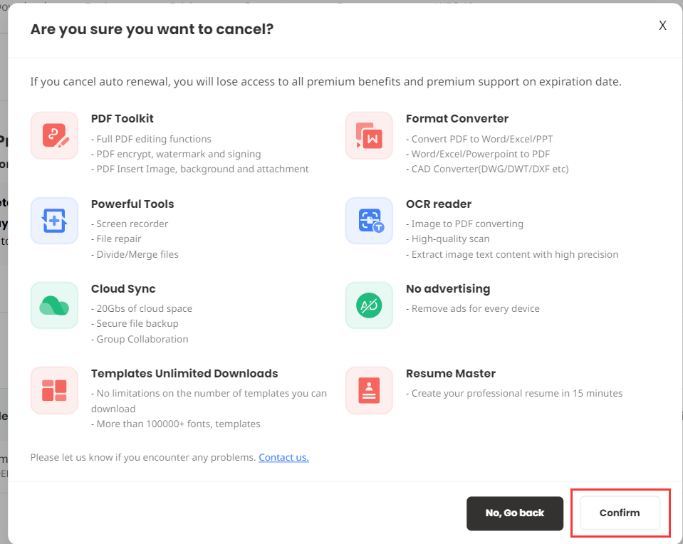 Step 3: Click Confirm. After the subscription is canceled, Auto-renewal is disabled is turned on.