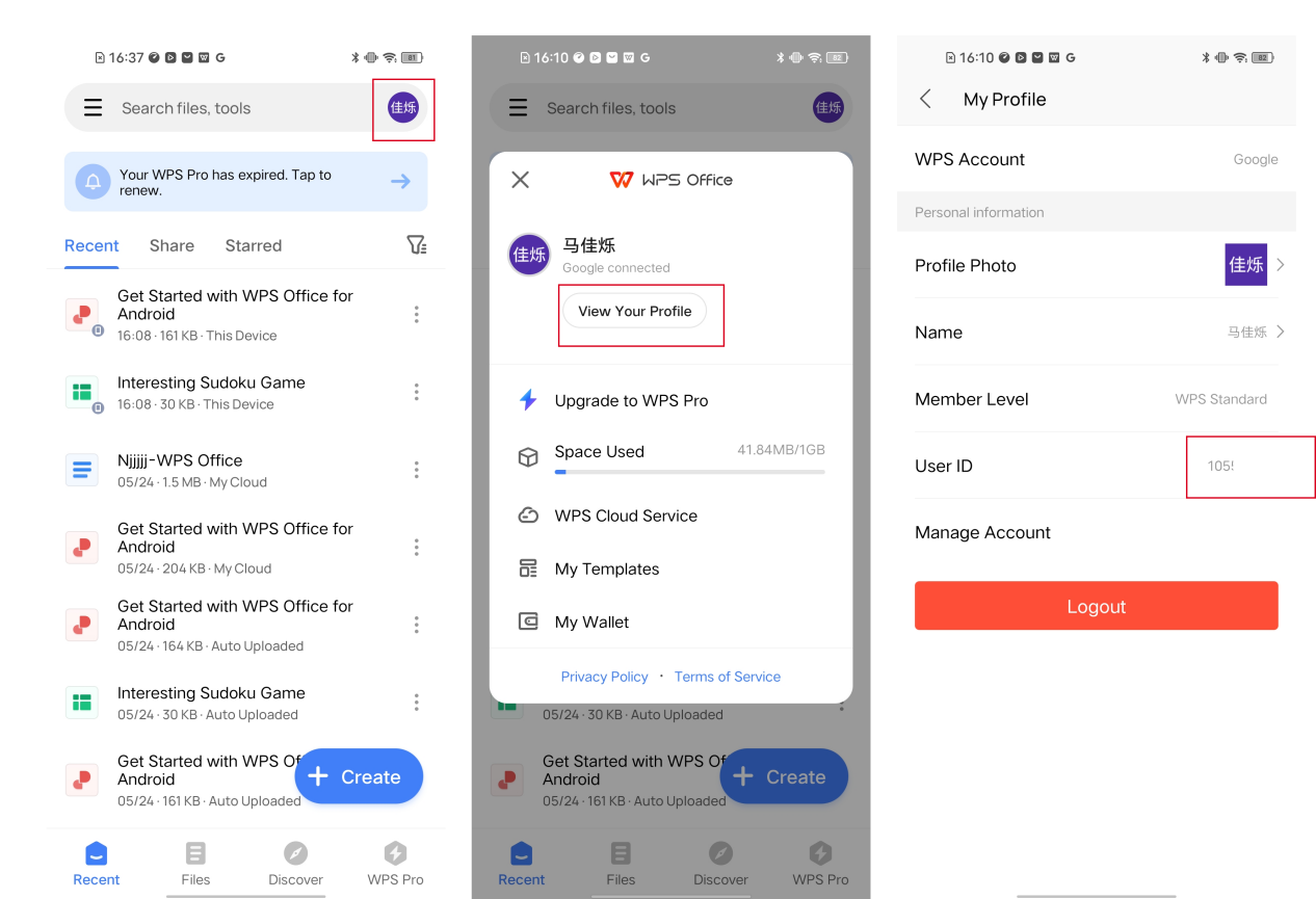 We are sorry that the canceled or expired subscriptions cannot be restarted. If you want to continue to enjoy WPS Pro benefits, you can open WPS Office on your Android device, tap the avatar in the upper-right corner, and tap Upgrade to WPS Pro to purchase the subscription again.